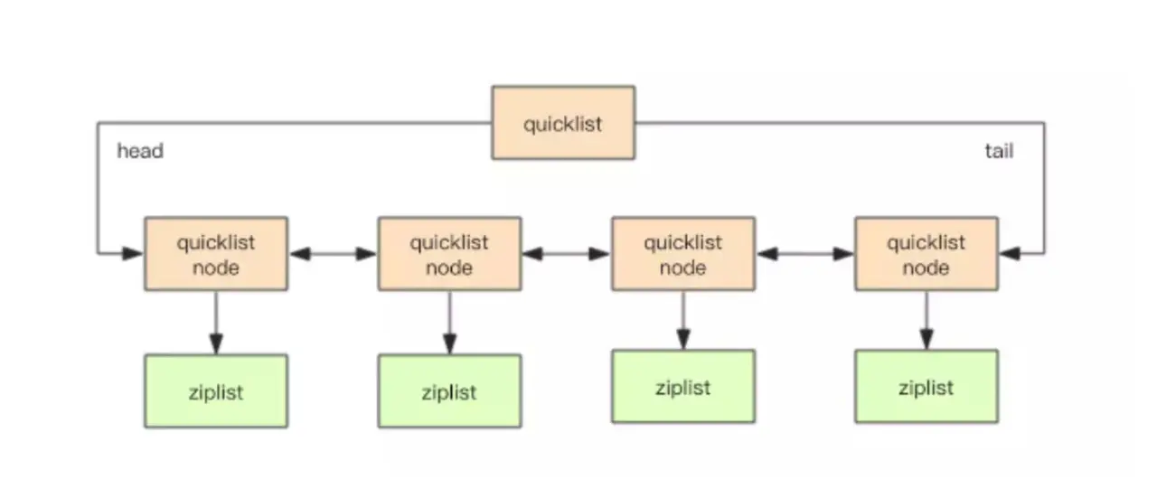 每一个quicklist node都包含一个 ziplist,由多个ziplist连成一个quicklist。