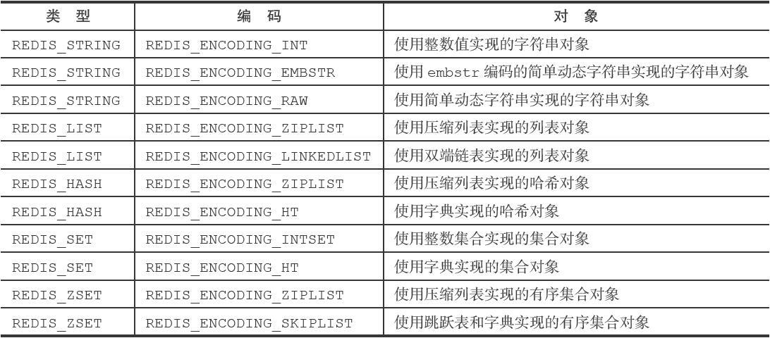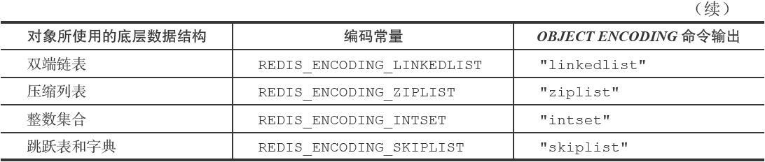 一个对象的底层实现可能有多种方式,比如列表对象底层可以是压缩链表或者双端链表实现,对应关系如下。