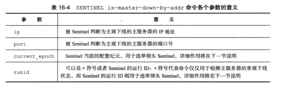 SENTINEL is-master-down-by-addr <ip> <port> <current epoch> <runid>