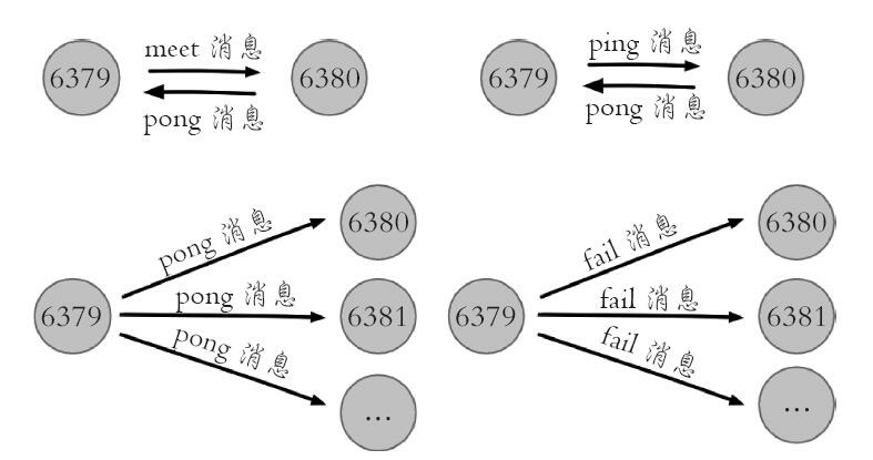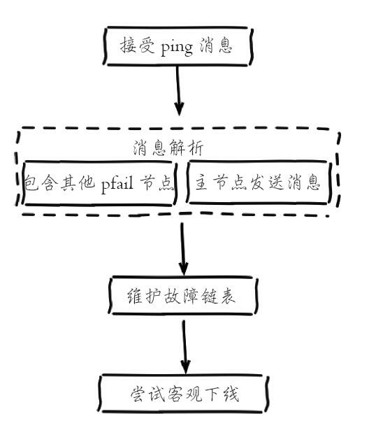 - fail消息:当节点判定集群内另一个节点下线时,会向集群内广播一个 fail消息,其他节点接收到fail消息之后把对应节点更新为下线状态。