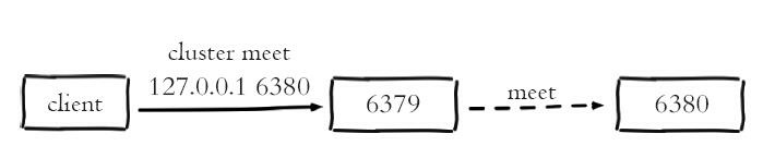 - 节点6379本地创建6380节点信息对象,并发送meet消息。