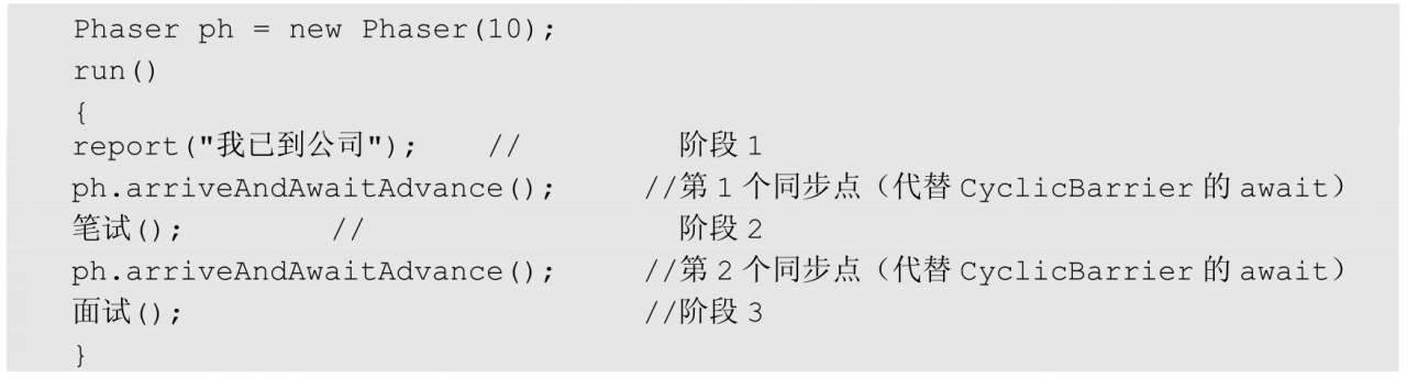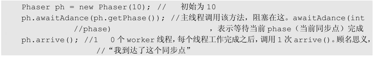 1个主线程要等10个worker线程完成之后,才能做接下来的事情,也可以用Phaser来实现此功能。在CountDownLatch中,主要是2个函数:await()和countDown(),在Phaser中,与之相对应的函数是awaitAdance(int n)和arrive()。